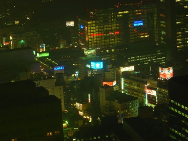 在la qua city吃了台灣也有的銀築地章魚燒,但是是台灣沒有的口味。之後,就去都廳前看夜景,夜景我覺得還好,應該是因為在摩天輪上看過了,不過比我還會用我的相機的Dama拍了幾張不錯的夜景照,並且在都廳前的紀念品店買一買明信片,還照了大頭貼。
